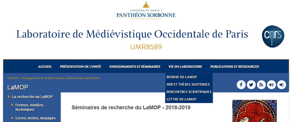 LAMOP, University Paris-1 Panthéon Sorbonne. For their current programme, see below.