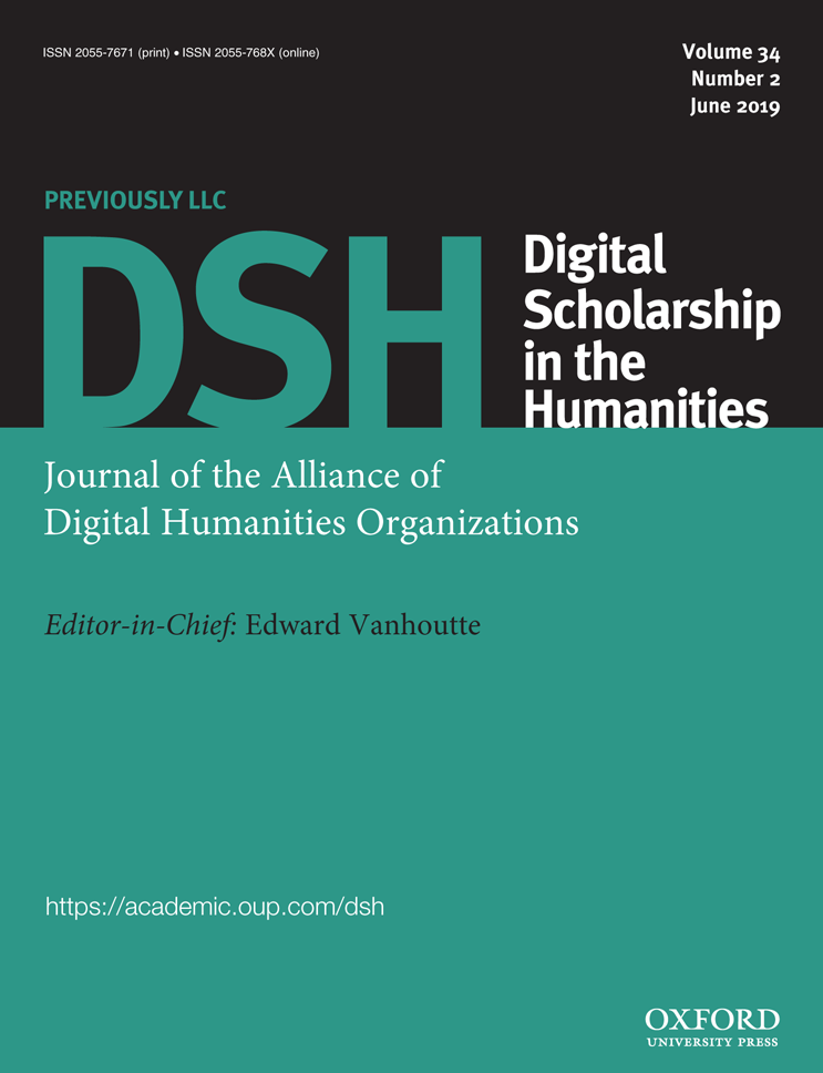 DSH is another important DH journal and is published by the European Association for Digital Humanities. Formerly known as Literary and Linguistic Computing (LLC), the journal is in its 34th year.
